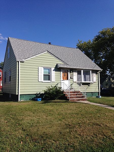 COZY 3 BEDROOM CAPE COD ON A DESIRABLE CORNER LOT WITH AN OVERSIZED GARAGE, FRESHLY PAINTED, EAT-IN CLASSIC KITCHEN WITH KNOTTY PINE CABINETS, PARTIALLY FINISHED BASEMENT, PLENTY OF STORAGE