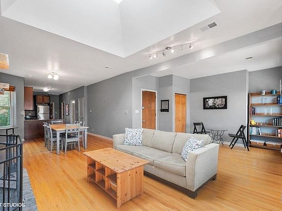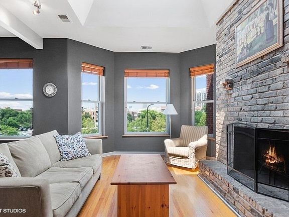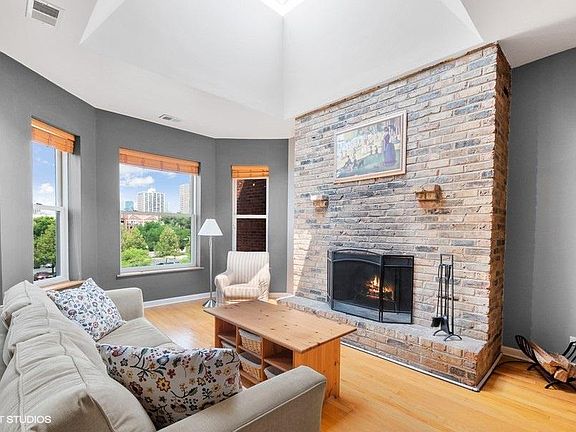 Welcome to your new home. This condo has it all! Top floor, with a skylights gives an abundance of natural light. Original brick & Stone fireplace for ambiance on those cold winter nights. Hardwood floors throughout. This unit is wider than the west units, and you also pick up extra space where the stairwell cuts into the 1st and 2nd floor units. Owner has put in new double-pained windows. Open floor plan with a nice sized dining room which separates the great living room and kitchen. Deck off the back for those lazy summer nights. Unit comes with laundry in the 1/2 bath. Unit also comes with an assigned Tandem parking spot in back for 2 cars. You can walk to the lakefront, Grocery Store, Wrigley field, and the nightlife, Red line, and busses pick up right outside. check out the 3D tour and also the Video. You will be delighted with this unit. INVESTORS OR FUTURE LANDLORDS: building allows leases as short as 30 days. Property will cash flow up to $550/Mo with 20% down and 10% ROI!!!