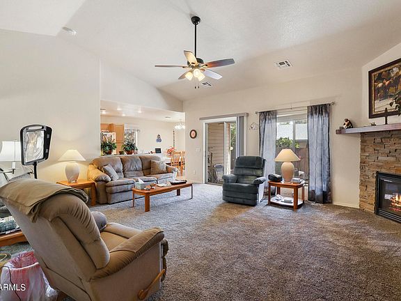 This well maintained single level 3 bedroom 2 bathroom home in Woodhill 2 features vaulted ceiling in large family room that has a gas fireplace, eat in kitchen with all appliances included, and newer carpet throughout all bedrooms and common areas. Large primary bedroom and bathroom is split from other bedrooms with laundry close by, washer and dryer included. Nice south facing covered patio with mature landscaping front and back, RV gate next to driveway to keep those toys safe at home with water and RV dump right there. Garage features opener and built in cabinets for clean storage. Furniture is available outside of escrow.