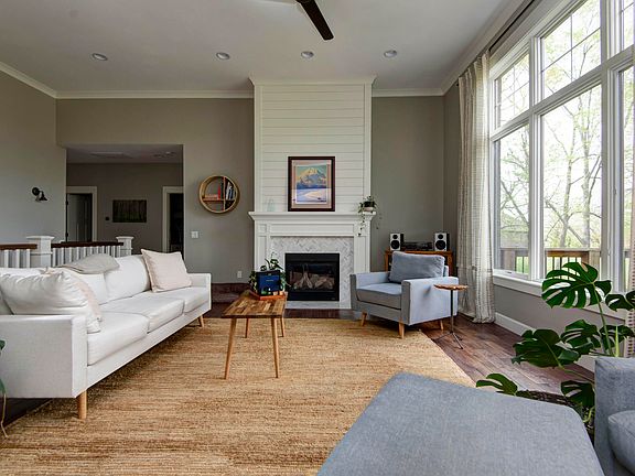 Gorgeous Nixa home in a private gated neighborhood just 3 miles south of Springfield. Located on a culdesac, this home is situated on a mature treed double lot (1.45 acres). The main level boasts high ceilings with an open floor plan, beautiful large windows allowing abundant natural lighting, 3 bedrooms including master suite with soaking tub, and an upper deck. The walkout basement has a large rec room, 2 more bedrooms, a wet bar, storage, and finished exercise room. The lower deck overlooks the huge backyard which is fenced with powder coat aluminum fencing and brick posts. The community maintains a lovely private swimming pool, fishing pond, and playground.