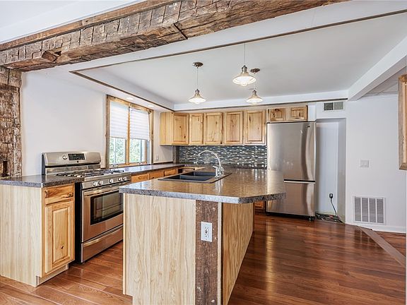 This Historic Gem Is Bursting with Personality! This 5-bedroom, 3-bath, 2,668 sq ft post-and-beam stunner has endless possibilities! From a single-family to a two-family to a three-family, this home has done it all—and is waiting for your next big idea. Step inside to the main floor where you will find 3 bedrooms and one full bath. First floor laundry hookups. Kitchen equipped with hickory cabinets, stainless steel appliances and large island. Spacious Living room, dining room and all new windows! Head upstairs and let your imagination run wild! Whether it stay a studio and a 1 bedroom apartment for extra income (separate electric/gas meters) or you turn it into your own primary suite, Elder/Teen suite, Multi-generational, game room, host holidays while sparing the main living area, or fill it with your favorite football memorabilia and host the best football Sunday parties, there are so many options! This unique property sits on 1.2 acres with 2 garages, and a shed. The deck off the kitchen overlooks the serene backyard filled with wildlife and the most amazing weeping willow tree, Cherry Trees, Apple Trees, Blackberry bushes! Metal roof only 7 years old. Delayed negotiations until August 19th at 4pm. Don’t miss your chance to write the next chapter in this epic story! OPEN HOUSE Saturday Aug 16th 10am -11:30pm.