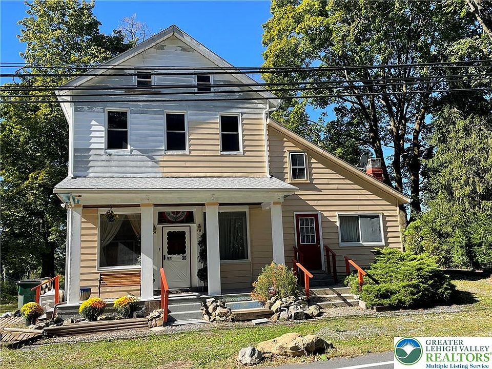 History and character come together in this unique structure in Upper Macungie Township. What had been a general store and and repurposed into a residence and apartment provides great room sizes, hardwood floors, high ceilings and terrific versatility. Huge eat in kitchen featuring a propane cooktop, refrigerator, dishwasher and electric range. Wonderful great room/multi purpose room, large primary bedroom and walk-closet plus second bedroom and main bath on second floor make this a terrific residence. Add the possible adjacent apartment with full bedroom, bath and second kitchen or use it for additional living space or guest room and make the possibilities endless. There's also a walk up full attic providing incredible expansion space. There's a full basement with a workshop area, compressor, outside power source to add a generator. and outside entrance. The exterior is a wonderful corner lot with privacy and room for parking, projects or possibly a garage could be built. Don't miss this opportunity to enjoy a covered front porch, mature trees providing many areas for terrace, garden or whatever you wish. Check out this great property and bring your finishing touches. Don't hesitate, take a look before an auction is scheduled. Ask your agent for details.