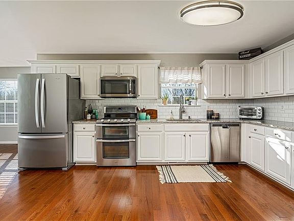 - Kitchen Features: Eat-in Kitchen, Pantry, View to Family Room, Stone Counters, Second Kitchen, Cabinets White