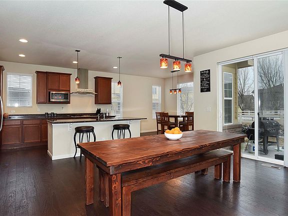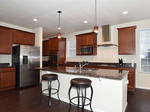 Beautiful 2-story on large lot w/mountain views and a 4-car garage in Firestone's desirable Saddleback Heights neighborhood. This gorgeous open floorplan features a gourmet kitchen w/engineered hardwood floors, center island/breakfast bar, pendant lights, SS appliances including a double oven & gas cooktop, butler's pantry & maple cabinets w/crown molding. An open dining area leads to a cozy family room w/gas fireplace & lots of natural light. This level also features a study w/French doors & a powder room. The upper level boasts 4 bedrooms inc a master w/walk-in closet, tray ceiling, ceiling fan & 5-pc master bath w/dual showers. A full-sized secondary bathroom & conveniently located laundry room complete this level. The full unfinished basement is perfect for future customization & includes rough-in plumbing. Situated on a large 1/4 acre lot w/mountain views! Close to multiple parks, St Vrain Valley schools, parks, library, rec center & shopping. Easy commutes via I-25