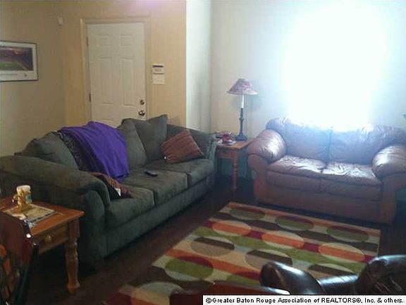 Very roomy townhouse near LSU, great for first time buyer, investor, or student, three bedroom, two bath with slab granite in kitchen & bathrooms, wood floors in living room, 16" ceramic tile floors in kitchen, crown molding, newer carpet, fenced back yard with wood deck perfect for relaxing or entertaining, security system, easy to show. Measurements not warranted by seller or realtor.
