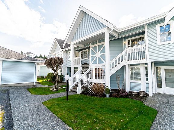 Extensively updated bright upper unit in the popular secure gated 55+ Lexington Square. This beautiful home has 2 large bedrooms, 2 baths, a spacious living room with vaulted ceiling & gas fireplace that leads to a quiet patio facing the garden, nook/flex area for den or dining, refreshed kitchen, walk-in pantry, large laundry room with ample storage throughout. New hardwood flooring in the living area, carpeted master, quartz countertops, designer paint & lighting, new refrigerator, washer-dryer, hot water tank, updated washrooms with new plumbing. Detached single garage, plenty of visitor parking, clubhouse. Rentals not allowed. Steps to grocery stores, restaurants, future Skytrain, highway, Guildford mall, walk-in-clinic, Surrey Memorial, schools.