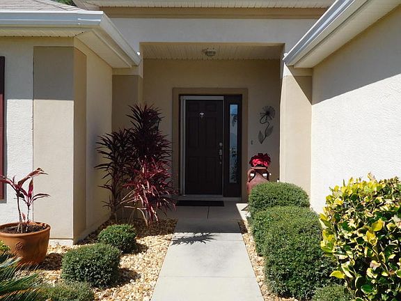 Popular Elkridge Model - 3 bedrooms, 2 bath, block & stucco home. Brand new gray S/S appliances. Upgraded maple kitchen cabinets with pull outs. Extended 2 car garage with new sliding screen door. Beautiful landscaping all around with curbing and stone. Front door with new phantom screen door. Open split floor plan, crown molding in master bedroom. Screened in lanai with new coolaroo shades. Serene private backyard, new hard wire motion light in back. All appliances have extended warranty but the micro wave. New flooring in attic for storage. This home is priced to sell!! Don't Miss Out!!!