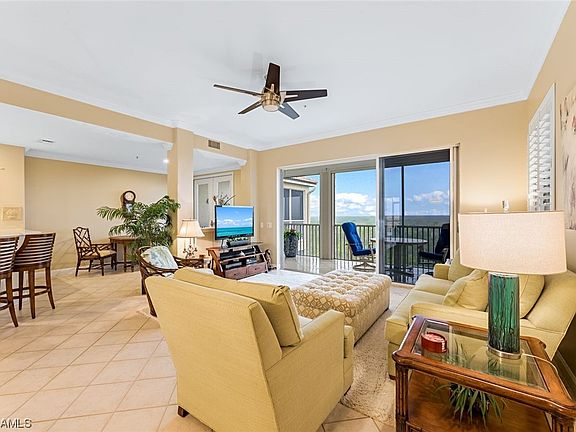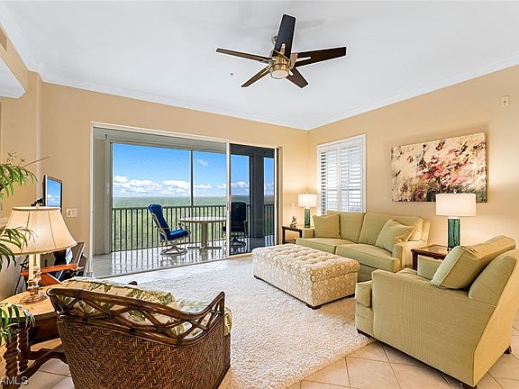 “Nassau” model, Furniture Negotiable, located in the desirable Sutton Walk community within Lexington Country Club, A large tiled Lanai, which offers a private and serene setting. Stunning, must see 4th Floor views of preserve and Ft Myers Beach Skyline in the distance, with Storm Smart electric shutters, featuring remote control and an app gives you control at your fingertips. As you step inside, you'll be greeted by crown molding throughout, plantation shutters, and a freshly painted interior. The bedrooms feature brand new carpeting and tile throughout the living areas. The kitchen has been completely renovated in the last five years, boasting refaced cabinets by Cornerstone, quartz countertops, stainless steel appliances, and a stylish tile backsplash. All fans and fixtures have been recently updated, and a new LG washer and dryer. AC unit new in December 2022, The guest bathroom offers tile flooring, a shower and tub combo, comfort-height toilet new facings on all vanities, and new quartz countertops. Additionally, residents have access to pay-as-you-play golf at Lexington Country Club, a 24-hour gated community that is close to shopping and the beach.