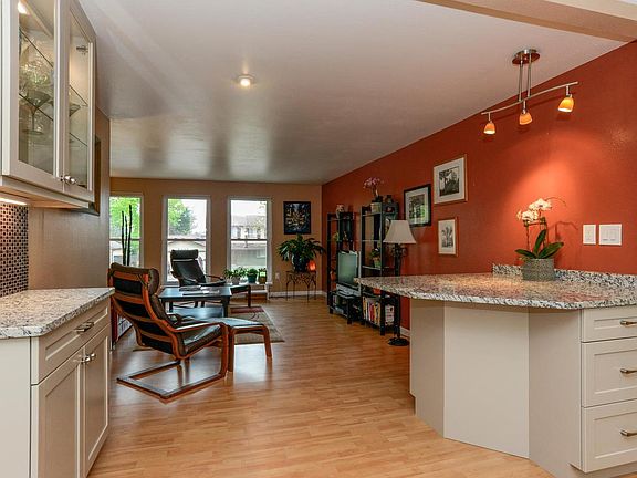House sits up off of La Salle. Extensive, terraced landscaping. Large gorgeous Maple Tree. New 'Anne Freed' Kitchen features; Quality cabinets with soft close drawers and doors, exciting granite counter and glass backsplash combination, under cabinet lighting, breakfast peninsula, stainless steel appliances, gas range. Two master suites - the one in basement is garden level, has dual sinks and shower heads and a heated bathroom floor. Two spare bedrooms have closet organizers. Large bright laundry room. Triple pane vinyl windows. New roof and gutters. Retractable awning. Large back patio. Gas Grill. Side load, oversized garage with extensive floor to ceiling storage cabinets. Lots of perennials. One block to Bear Creek Open Space and bike path.