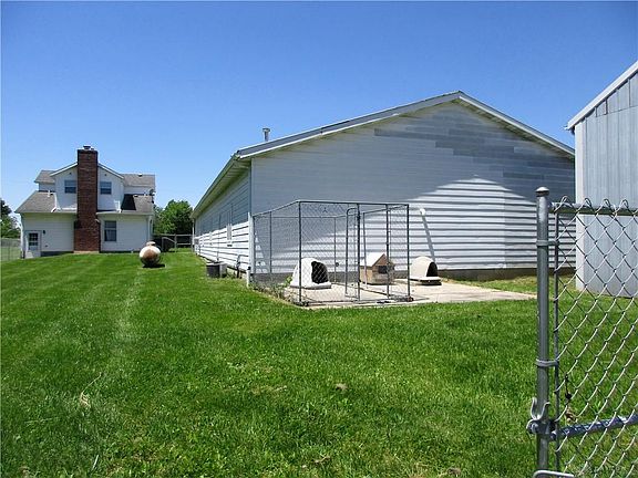 Opportunity is knocking! Great for the hobbyist. Enjoy a great 3 bedroom, 2 bath home with full basement located on almost 6 acres with some wooded area -complete with partial fenced yard and relaxing front porch 27x 7. Large country kitchen has lot of cupboard space, pantry, built in shelving and fireplace. Living rm is equipped with entry closet and open staircase, bonus the staircase has a built in chair lift. Downstairs find a Family rm with built in show cabinet, cupboards and sink. The utility area offers lots of storage area and built in shelves. All the extra outside amenities include: 2 car detached garage (24x24) with attached heated office (20X11) with half bath, the barn /garage continues with another 40x30 garage with 2 garage doors and a workshop 25x15 plus add an additional 14x10 entry area and a 9x11 rm and 2 large closets. The other detached barn is 55X60 and is divided into storage area and area for livestock with hay loft, this barn has a 18 ft lean too out back, add a 1/2 acre pond to the mix located to the rear of the property and you have a property with unlimited possibilities.
