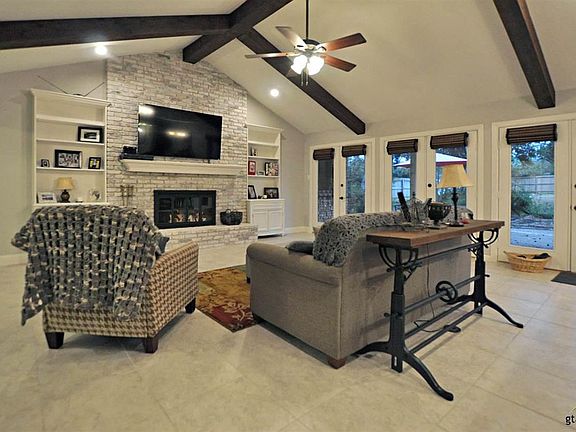 Stunning updated home in the heart of south Tyler close to dining and entertainment. Stepping inside you are welcomed into the large living room that boasts vaulted ceilings with wood beams, tile flooring, and a floor to ceiling brick fireplace with built-ins on either side. Completely remolded eat-in kitchen features quarts counter tops, stainless appliances, custom cabinets, and ample counter and storage space. Large master suite offers wood flooring, double vanity and walk-in closet. Two more bedrooms both with nice size closets work nicely for your family and overnight guests. The detached workshop is a great place for all of your tools and equipment. Expansive backyard offers a wonderful patio for outdoor parties and a wood privacy fence. Don't miss out on all this home has to offer. Call for your private tour today!