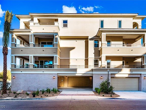 Brand new Toll Brothers Foscari plan at Mira Villa in Summerlin North! The Foscari's welcoming landing and covered entry are accessed by an inviting stairway, and reveal a spacious foyer with views of the expansive great room, dining room, and desirable wraparound covered deck beyond. The well-designed kitchen is equipped with a large center island with breakfast bar, plenty of counter and cabinet space, and roomy pantry. The lovely primary bedroom suite is complete with a gigantic walk-in closet, covered deck access, and deluxe primary bath with dual vanities, luxe glass-enclosed shower with seat and drying area, linen storage, and private water closet. Spacious secondary bedrooms feature sizable closets and shared access to a Jack-and-Jill bath and large private covered deck. Additional highlights include a convenient elevator, powder room, and trash chute off the foyer; centrally located laundry; stairway access to ground level off the great room; and additional storage.