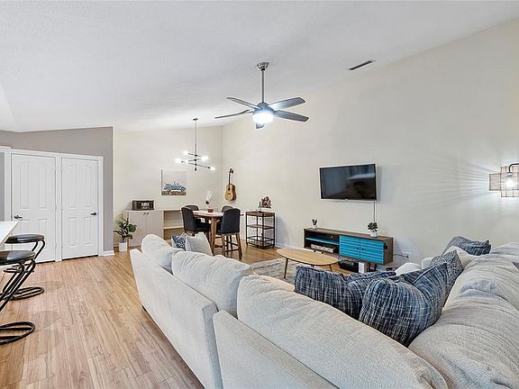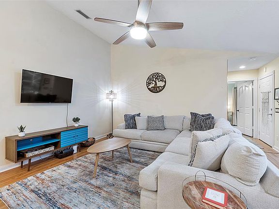 Lowest Priced Townhome/Villa in Sun Terrace! THIS HOME BOASTS AN INVITING OPEN FLOOR PLAN CONCEPT. SHOWCASING VAULTED CEILINGS, WOOD LAMINATE FLOORING THROUGHOUT (NO CARPET), OPEN KITCHEN WITH CENTER ISLAND, THE 2 WAY SPLIT FLOOR PLAN BEDROOMS PROVIDE AMPLE SPACES COMPLEMENTED BY A LARGE SCREENED COURTYARD. CONVENIENTLY LOCATED NEAR SHOPPING, INTERSTATE AND FINE RESTAURANTS.