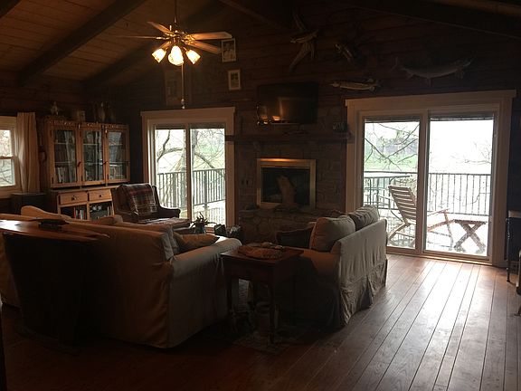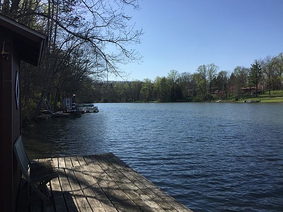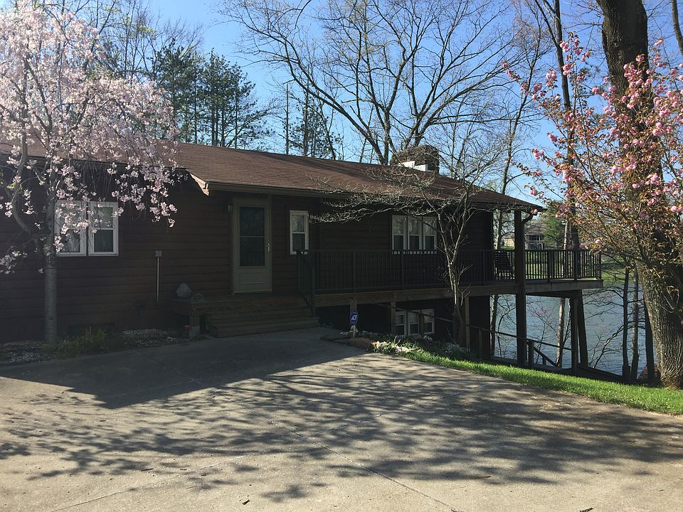 Waterfront log home with beauitful lake views. 3 bedrooms, 2 baths, finished lower level. Gorgeous wood floors, large great room with stone gas fireplace. Beautiful wrap around deck (new 2014). Large detached garage and storage shed. Doc with storage shed for water toys. Wooded lot with nicely landscaped yard.