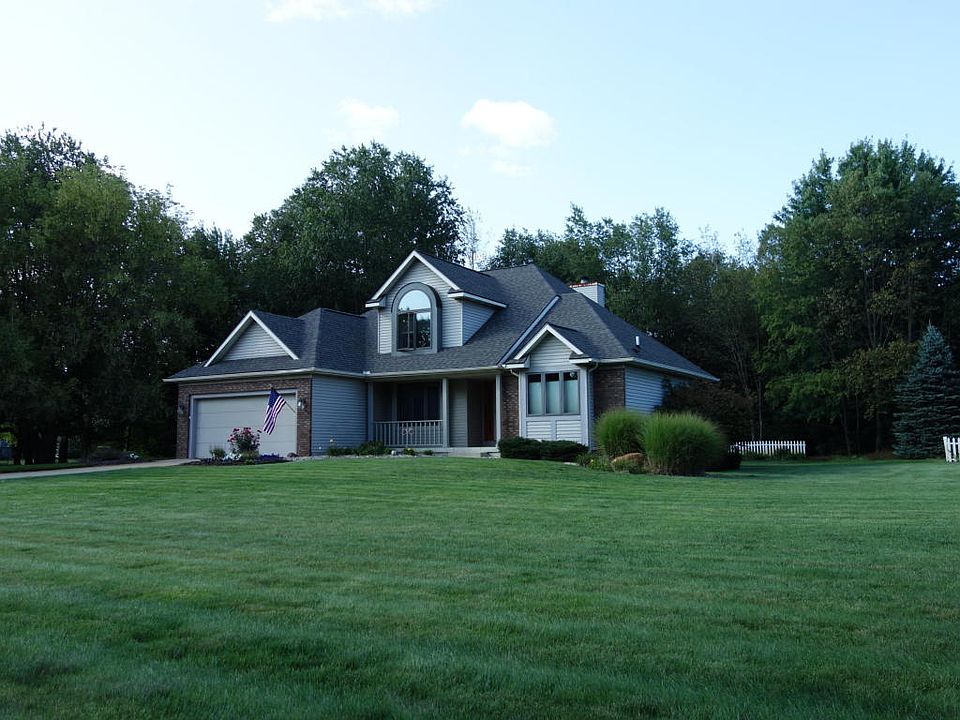 Very well cared for home on beautiful 1.2 acre lot w/ lush lawn & quality updates in peaceful neighborhood setting just ten minutes to 28th St shopping. Gorgeous, updated kitchen w/ gleaming quartz counters, breathtaking two story LR w/ gas log FP & new carpet, main floor Flex Room could be used for dining or home office, lovely main floor Master w/ walk-in closet & bath w/ dual sinks, garden tub & separate shower. Two nice sized bedrooms up & highly functional full bath w/ separate dual sink area from shower/toilet area. Basement is ready for your future finish needs. The lawn is lush & thick w/ underground sprinkling & features beautiful landscaping. New roof 2015, furnace ten yrs old per owner. Main floor laundry includes washer/dryer. Beautiful home shows pride of ownership!