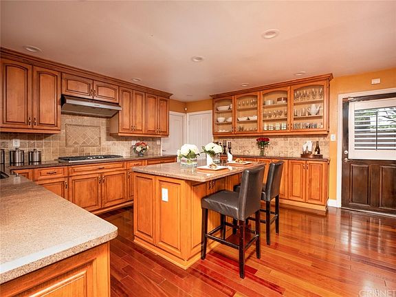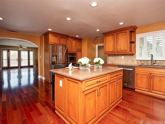 Welcome to this beautiful 3-bedroom, 2-bathroom Northridge gem, fully remodeled, updated & expanded for an open concept kitchen & large master suite! The very definition of Pride of Ownership with no detail or expense spared. A chef's kitchen includes granite countertops, large center island with seating & electric outlets, built-in appliances, cabinets with pull-out drawers, under cabinet lighting & more. Real hardwood flooring throughout kitchen plus dining area & living room with fireplace. Two nice sized bedrooms with engineered hardwood floors & custom closets. Main bath includes dual sinks, tiled shower, built-in Bluetooth speaker & motion sensor lights. Master suite features double French doors for backyard access, walk-in closet with custom cabinets/built-ins & bath offering dual sinks, separate vanity, extra-large shower with dual shower heads/handhelds, built-in Bluetooth speaker & tile flooring. Outside, enjoy your private pool & ample seating, perfect for BBQ's & entertaining guests. There's even a laundry room equipped with a separate sink & storage! So many UPGRADES: newer double-pane windows & French doors, copper plumbing, newer roof, custom shutters throughout, recessed lights with dimmers, keyless keypad entry, new garage door, tankless water heater, insulated garage with conversion potential, alarm/security cameras throughout interior & exterior & much more. Minutes away from CSUN, Ralphs, Starbucks, Chase, restaurants & more, this home HAS IT ALL!