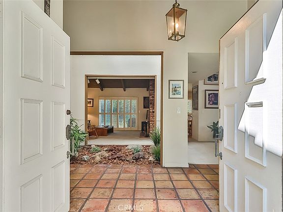 Charming single-story home with 3 car garage in Northridge. 4 Bedrooms, 2.5 Bathrooms, 2,473 Sq.Ft., on a 10,701 Sq.Ft. Lot. Double door entry leads you into the tile foyer and you are immediately greeted with an indoor atrium adding increased natural light and added greenery. Step down formal living room with high wood beam ceilings and is open to the formal dining room. Kitchen with window to the backyard, tile counter tops, updated cabinets, gas stove, built-in oven, and a dishwasher. Kitchen with separate breakfast area and sliding door to the backyard. Family room with wet bar, brick fireplace, high ceilings, and is perfect for entertaining/watching TV. Primary bedroom with Ensuite bathroom and walk-in closet. All secondary bedrooms of good size. Updated windows, inside laundry room, 3 car garage, and central air condition, recessed lighting, and shutters on the windows. Backyard with patio, grass area, and fruit trees.