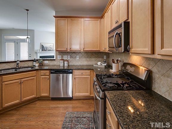 This 3-bedroom Brier Creek townhome is absolutely stunning. It shows like new construction. You will love the quartz counters, stainless steel appliances (gas range, microwave, dishwasher, and refrigerator), screened porch (with a view of the pond), new HVAC system, fresh paint, new carpet (upstairs), manufactured hardwood floors (downstairs), 9' smooth ceilings (on both levels), and the close proximity to Research Triangle Park, RDU international airport, and the soon-to-be-built Apple east coast campus.