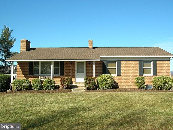 Beautiful all brick rancher on 6.1 acres with pastoral and mountain views. The home was built in 1978 with 1,344 square feet on each level. This is an estate sale that was pre-sale appraised by Six and Associates * The main level features a 5x25 covered front porch opening to the living room with a gas fireplace, and newer hardwood flooring that includes the hallway. The updated kitchen/dining area features stainless appliances with granite countertops & backsplash. The dining area opens with a sliding glass door to a side deck with stairs to the pool area. The master bedroom has a full bath with a shower in addition to the hall bath ** The finished lower level features a family room with a brick wood- burning fireplace that has a wood-stove insert. There is a brick hearth and brick wall surrounding the fireplace. The half bath is nearly finished and operational. The two finished storage rooms could be potential bedrooms. There is a cold storage room below the front porch that would be great for vegetables, or a wine cellar. There is a smaller storage room and laundry area as well *** The family room opens to the 12x16 rear covered patio and heat-pump heated in-ground pool with a vinyl liner(to be replaced by the buyer) sliding, and diving board. The pool area features a screened gazebo with an electric fan, water feature/Koi pond, and a hardscape patio behind the wood-burning outdoor fireplace **** The lower level storage room and laundry area open to the attached 22x28 oversized finished two-car garage with door operators. There is a storage building for lawn equipment or a potential stable ***** Updates to the property include vinyl windows, architectural roofing shingles, sliding glass door, and a Trane oil furnace & outdoor A/C unit **** The property is 3 miles north of Frederick, with easy access to all major highways ***** No HOA or city taxes ***** This is an agricultural use property, and horses are welcome. ***** This property is an estate sale and so