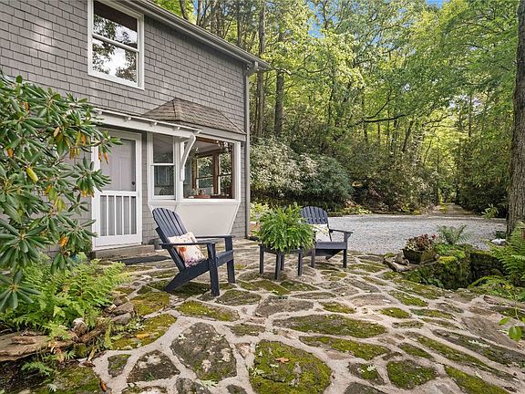 After approaching from the long rhododendrum- lined driveway filled with moss-laden rocks a Nantucket-style cottage comes into view. Vintage in age but lovingly restored with Brazilian rosewood floors, massive rock fireplace in huge great room complete with large built-in bar for entertaining. GORGEOUS mountain views of long- range mountain peaks are visible from the large windows in the great room that jogs memories of “Dirty Dancing” movie! The spacious primary bedroom is on the main level with an updated bath and doors leading to the rock-filled terrace for taking in dramatic sunsets. A wide staircase leads upstairs to 3 large private guest rooms and a “Camp Merrie-Woode -style bonus area filled with games for nostalgic memories of old Highlands/Cashiers! Sit on the outdoor terrace lined with moss-covered rocks and old flora and fauna and breathe in cool mountain air, and watch the clouds cover the mountains that are in view! Located on over 4 acres with the National Forest as your neighbors! Truly what a mountain home should be and one of a kind that beckons you to linger! Furnished and ready for making the best mountain memories. Two Freshly painted bedrooms, bath and kitchen cabinets. Encapsulated and zoned heating and air. If creaking screened doors jolt your memory you need to see this home with modern comforts! Privacy assured and nostalgic of old Highlands with retro accents! GREAT BUY -for real! Only 5 miles from downtown but a world away...