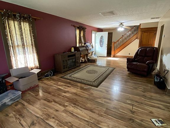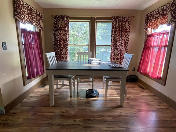 Located on a double lot, you get the country feeling while being in town. The 2 car garage is oversized on the second lot with an insulated room with a pellet heater. Plenty of space for a man cave and parking for side-by-sides. The home features original wood work, front and back porch with a large yard.