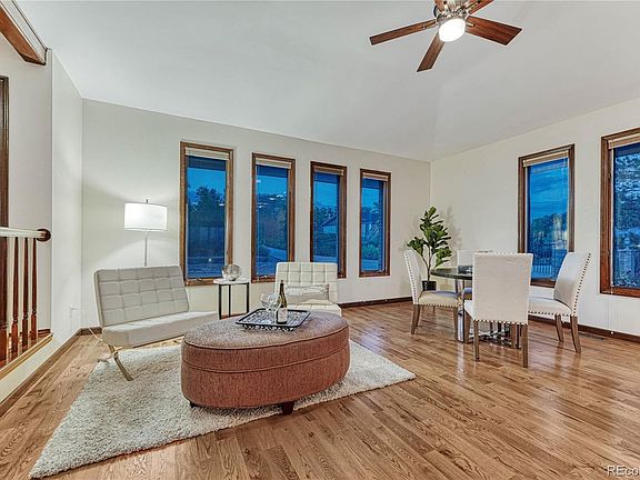 Are you looking for fabulous views including breathtaking mountain views, private lot & main floor living within minutes to all the modern conveniences? Look no further! Absolutely stunning million dollar 180 degree southern views from the Kansas border to Pikes Peak to the Rocky Mountains. Custom designed all brick ranch highlighting indoor-outdoor living in every room! Large floor to ceiling Anderson crank out windows throughout. Spend hours gazing at the gorgeous views. Colorado Living at its finest! Upon entry you are greeted by a formal entryway that flows into a large great room with gorgeous hardwood floors, living room with fireplace and impressive hearth, formal dining room & steps out through a slider onto a fabulous 1,120sqft stamped patio, partially covered. Beautifully landscaped with mature trees & xeriscape in areas for maintenance free care. Flow back through another slider into the kitchen with breakfast nook/eat-in space, stainless steel appliances, granite counters, island & pantry. Large primary suite with a luxurious spa like primary bath. Bath includes heated floors, one room with toilet & large soaking tub & another room with toilet, shower & walk-in closet. Two additional bedrooms & full bathroom just a few steps down a hallway with skylights, letting the light pour in. Large laundry room with utility sink & great storage connects to a mud room & out to the oversized 3 car attached garage with 3 separate bay entrances. Head downstairs to a 75% finished basement with large family room, 3/4 bathroom, rec room & great storage space. Easy to add a basement bedroom or basement suite with egress windows & utility sink. Unique flag lot allows for the property to be "hidden" from the main street. Drive down a private shared driveway to the property. No HOA & room to store your boat, RV or other toys. Check out the property website http://9134wwarrendrive.com/ where there is a highlight video, 3D Matterport Virtual Tour & interactive floorplan.