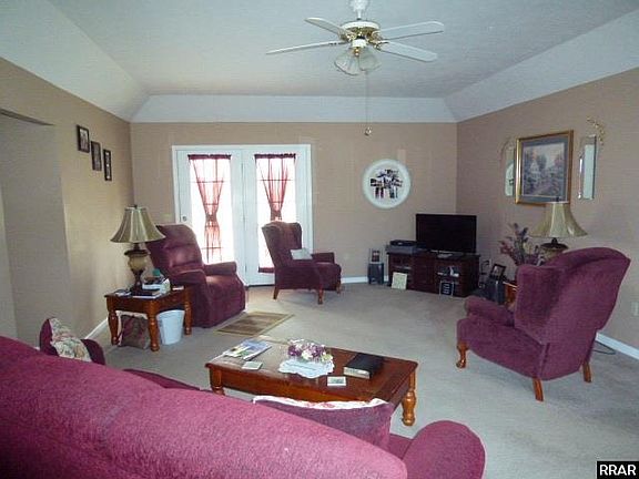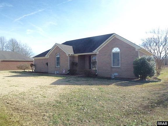 Well maintained brick ranch with split floor plan featuring great room with doors opening onto covered patio, kitchen with white cabinets & all appliances, dining room with closet for storage of china, linens, crystal, etc., master bedroom with ensuite bath, utility with washer/dryer connections & breaker box, two bedrooms, one with vaulted ceiling, at opposite end of house share a bath. A two car garage and detached storage building complete the picture. All this in like new condition.