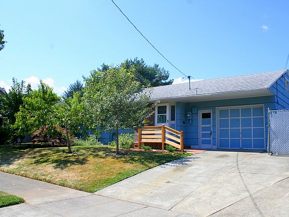 Solid, styln', and super cool ranch with large windows and a brick-framed wood burning fireplace make for a cozy living area. Roomy master bedroom with ensuite bathroom has a sliding door to the patio, and plenty of closet space. Outside, the fully fenced backyard is private and awesome, with a VERY LARGE covered patio that is a party host's fantasy. Peach, plum, Asian pears, apple, and bing cherry trees in the front yard. [Home Energy Score = 6. HES Report at https://rpt.greenbuildingregistry.com/hes/OR10182850]
