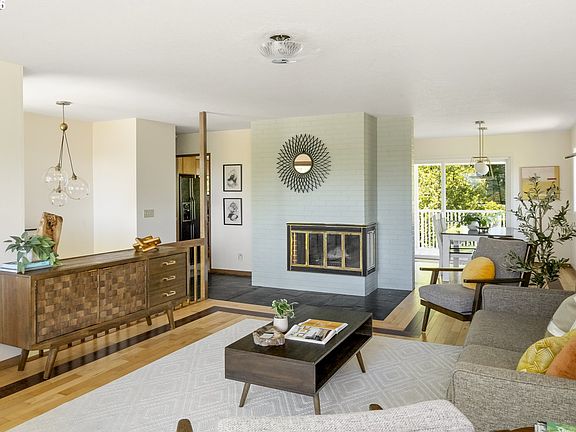 Located less than a mile from the fun shops and eateries of Multnomah Village, you'll find this swanky mid-century split level on a park-like lot! Enjoy entertaining in the large living room with inlaid wood floors, slate tile, a cozy fireplace, and an oversized picture window that captures the treetop views. The expansive covered deck makes for easy indoor-outdoor living with its connection to the kitchen and dining area, and overlooks the lush backyard with its apple and plum trees, large shed with electrical, and sunny play and gardening space. Unwind at the end of the day in the spacious family room that can easily be converted into a guest room with its two built-in Murphy beds and exterior entrance! Careful stewardship and upgraded systems are the cherry on top: newer roof, furnace, a/c, hot water heater, electrical panel, and all new plumbing all within the last 11 years. Only .4 miles to the wonderful Spring Garden Park and Playground! [Home Energy Score = 3. HES Report at https://rpt.greenbuildingregistry.com/hes/OR10239488]