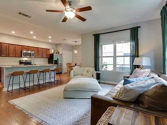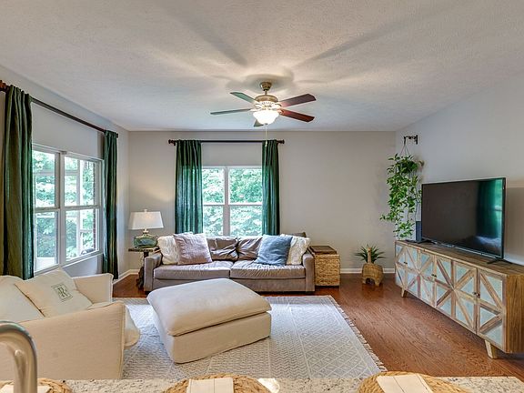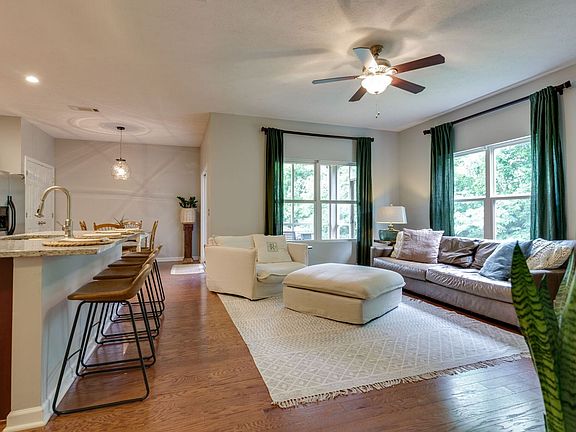 Unfurnished single level brick home on quiet cul-de-sac. Home features hardwoods throughout the entire home, 10 foot ceilings, and backs up to trees for privacy. Across the street from community green space and park. Kitchen features granite countertops, stainless appliances, and a large eat at island. Flex room could be used as an office or formal dining room. Covered screened in patio is a peaceful way to start or end the day. Owner will consider a small dog only.