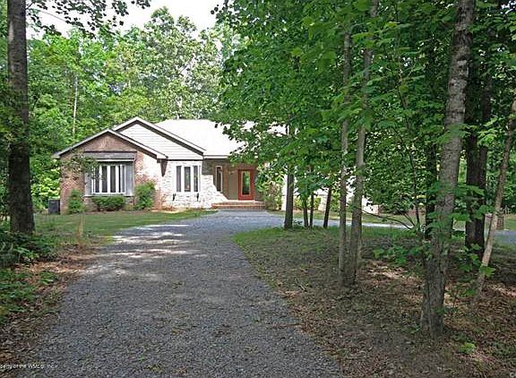 Looking for a get away? Say no more... Enjoy being surrounded w/6 acres of wooded privacy, yet minutes away from I-64. This custom built home offers, one level living w/the option of an in law suite on the lower level. Chef's kitchen w/granite countertops, SS appliances and kitchenette (lower level), 3 fireplaces, family, living and great rooms. This home is a must see!