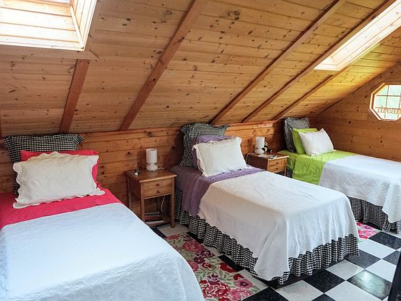 1999 built 1-1/2 story home with an Up North wooded design. 2 bedroom, 2 bath, master suite with skylights & private mini deck, on a mini-lake aka the Pond. Also near boat landing for Sturgeon Lake. 1.12 acres Interior has an artisan inspired décor. Large 3-season porch also works as a bunk house for company. Home has 1550 finished square feet not including the porch. Great views. 24x40 garage with a 2nd floor unfinished for future use.