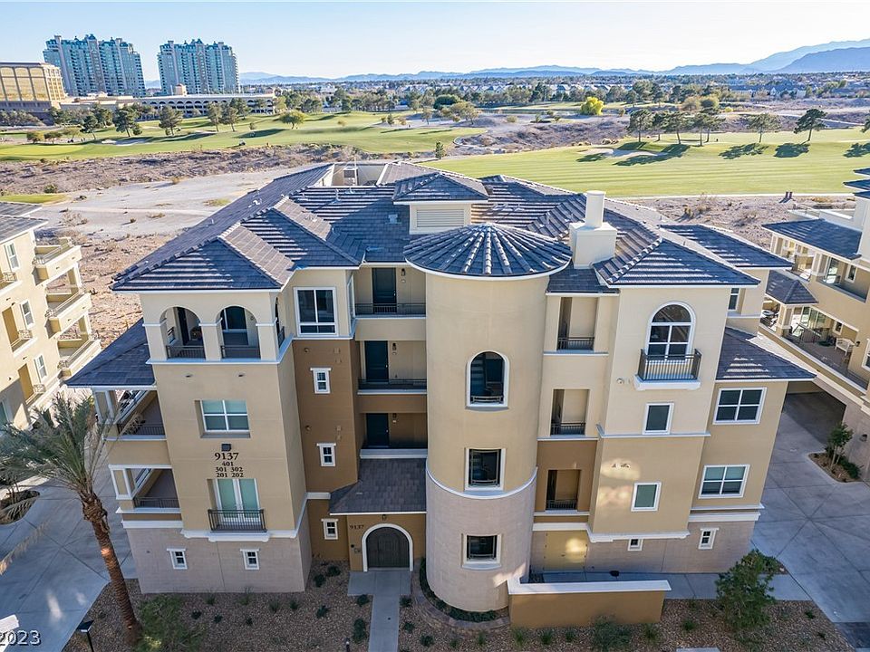 WELCOME to luxurious gated condo living nestled in the heart of prestigious Summerlin! Take your private elevator from your massive 2+ car garage to your single story with over 2,300 of square feet floor plan! Perfect for entertaining inside or open the designer patio door to increased outdoor space that overlooks a breathtaking Golf Course, Mountain and Las Vegas Strip views! Chef's kitchen with beautiful quartz waterfall countertops, upgraded designer cabinetry and Stainless Steel Appliances. If you don't want to cook, simply take advantage of the numerous restaurants steps away. Primary Suite with a fashionistas custom walk-in closet that includes a gorgeous Vanity, custom shelving, drawers and storage. Minutes away from a PLETHORA OF SHOPPING AND DINING AMENITIES! Builders New Home Warranty until July! A MUST SEE ASAP!