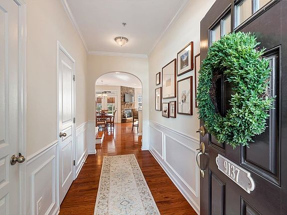 This gorgeous Brier Creek townhouse has the following special features: gleaming hardwood floors (throughout the main level); 9-foot ceilings (on both levels); an open floor plan; a stunning kitchen with stainless steel appliances (i.e., refrigerator, dishwasher, electric range, and microwave that is vented to outside), 42-inch cabinets, granite countertops, and a ceramic tile backsplash. Plus there is a stacked-stone fireplace with gas logs (see photos); private screened porch (with a view of the water); three large bedrooms; two-and-a-half bathrooms; a one-car garage; and two community swimming pools. It is move-in ready and is available to be seen today. 9137 Wooden Road. It could be yours. Make it happen!