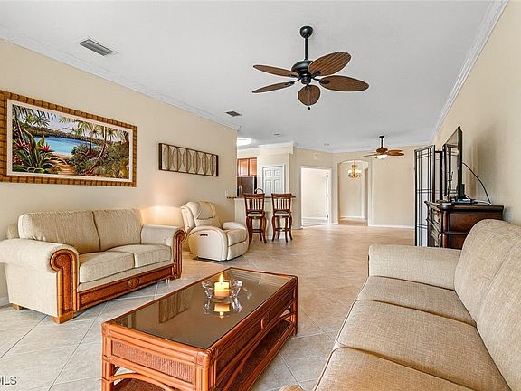 This beautiful attached villa stands out with lush landscaping and a prime location, just steps from the Amenity Center, in one of the area’s most desirable communities. Offering 2 bedrooms PLUS a den, this home is designed for functionality and style. Step inside to discover tile flooring and wood-like flooring, ensuring easy maintenance and a sleek look. The exterior is equally impressive with tropical landscaping for a private oasis! The home also features fiber optic wiring already installed, you'll never have to worry about interruptions to your cable or Wi-Fi service, included in the HOA. Close to the amenity center means that you'll be able to enjoy all that the community has to offer, including basketball and tennis courts, a community pool & spa, a clubhouse, fitness center, & tot lot. But perhaps the best part of this community is the social committee, which is always planning fun events for residents of all ages. With its prime location near shopping, I-75, & the airport, you'll have everything you need at your fingertips. Reflection Isles provides a lifestyle as exceptional as this home. Nestled in the environmentally-sensitive Six Mile Slough, you'll experience tucked-away privacy with modern conveniences just minutes away. Don’t miss this unique opportunity to own a villa that combines thoughtful upgrades with unbeatable storage solutions. Schedule your showing today and experience the best of Reflection Isles living!