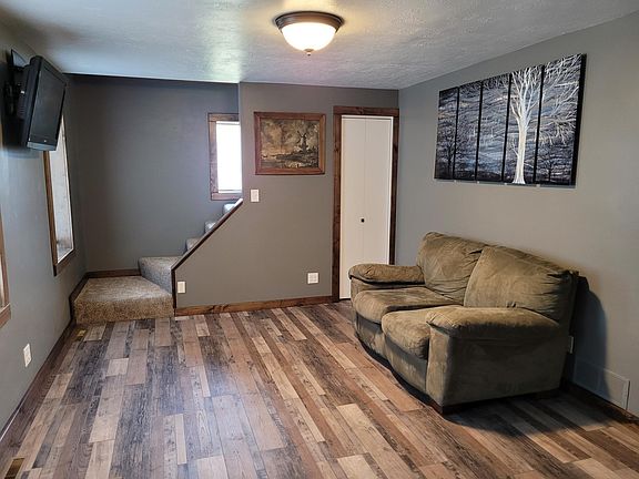 New to the market! 1.5 story home that is totally remodeled-inside & out! Exterior has new siding, windows, roof, plus new sewer line from house to street! Interior features the stunning eat in kitchen with rustic maple custom cabinets -(soft close & pullout drawers), attractive backsplash, plus the stainless steel appliances are within 3 yrs old. Main floor also includes front living room, bedroom, convenient laundry with full bath with gorgeous tiled tub surround. Addition of an appealing 16 x 20 family room with vaulted ceiling, recessed lighting, barn door, closet, and exterior door to deck. Upper level is finished with possible 2 bedrooms and 3/4 bath. Unfinished partial basement with crawl space, 200 amp breakers, newer furnace & central air. Large backyard with garden area & storage shed. No garage, but room to add single garage. Potential to purchase vacant lot to the west (75 x 158) if buyer was interested. So much to love about this beautifully remodeled home!