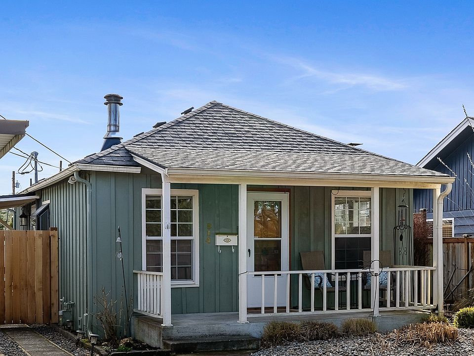Welcome to this charming bungalow in the heart of downtown Puyallup. Looking for a cozy, low-maintenance home with plenty of updates? You found it! 2021-New 40 year roof, sewer line jetted & new clean out installed. 2022-Bathroom remodeled, hot water heater replaced with tankless, new washer/dryer, kitchen updated, new stove, new LVP flooring. Electrical panel has been replaced. Bdrm opens to the covered deck. Backyard is fully fenced and maintenance-free, a perfect place to relax whether hosting a BBQ or simply enjoying a quiet evening outside. And ohhh the location! Walking distance to the Puyallup Fairgrounds, Pioneer Park, post office, library, grocery store. TV in bdrm stays. First home, downsizing, rental, or Airbnb...so many options.