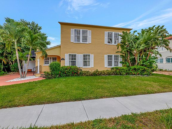 Welcome to a Spanish-inspired sanctuary nestled in the heart of West Palm Beach. This enchanting two-story home captures the essence of timeless elegance, blending the allure of classic architecture with modern comforts. With 3 bedrooms, 2 baths, and a host of remarkable features, this residence offers a truly exceptional living experience. From the moment you approach, the distinctive Spanish design draws you in through arched entryways and intricate detailing showcasing the craftsmanship that defines this home. Step inside to discover a world of warmth and sophistication, where hardwood floors grace both levels, adding an inviting touch to every room.The main living spaces effortlessly flow from one to the next, creating an open and airy atmosphere. The living room has a stone fireplace that serves as a cozy focal point, perfect for gatherings or quiet evenings. Well-placed windows allow natural light to flood the space, illuminating the unique architectural details that abound. The gourmet kitchen is a culinary haven, featuring modern appliances, ample cabinetry, with its blend of functionality and beauty, this kitchen is a place where cooking becomes a joyful experience.