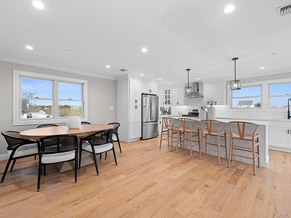 Experience luxury waterfront living in this 2023 contemporary new construction in Lindenhurst Village! Featuring 4 bedrooms, 3 bathrooms, and a dedicated laundry room, this home offers an open-concept layout with a chef’s kitchen boasting quartz countertops, stainless steel appliances, and a spacious island. Hardwood floors flow throughout the sun-filled living and dining areas. The primary suite includes vaulted ceilings, a walk-in closet, spa-like bath, and a private balcony with breathtaking bay views. A second balcony on the first floor provides even more outdoor living space, perfect for entertaining or relaxing. Additional highlights include a 2+ car garage and central air. Nestled on a cul-de-sac with direct bayfront views, this home delivers modern elegance and a true coastal lifestyle just minutes from marinas, beaches, shopping, and the LIRR.