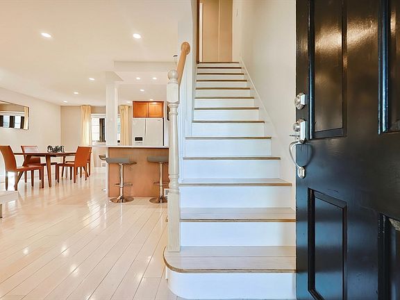 Must see “Showplace” three level brick town home at The Village. This sleek home has undergone a top to bottom renovation and loaded with high-end finishes. Featuring light wood flooring, recessed lighting, beautiful kitchen with custom wood cabinetry, glass tile, stone counter area that seats 4, open living dining area with builtin glass shelved TV niche and tranquil outdoor patio. Two stunning bathrooms featuring rain showers, MAAX soaking tub, glass shower and added mirror cabinets, new slab style interior doors, nest thermostat, pull down attic for storage and much more. The finished lower level offers a large bonus room with shower bath, office area, built-in storage, and custom laundry area with brand new front loading LG washer & dryer. All this situated in a charming tree-lined setting featuring outdoor pool and clubhouse. This rare offering comes with 1 parking space and is eligible for an optional second car tandem winter only space for a small annual fee