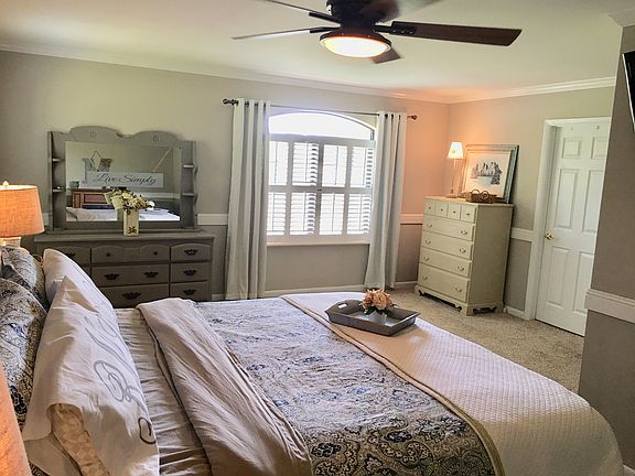 4 bedroom, 3 bath, brick home located on a large corner lot in Seven Cedars Subdivision. Home features split bedroom house plan with beautiful plantation shutters throughout home. Kitchen is equipped with stainless steel appliances, including a double-oven and under cabinet lighting. Granite countertops are featured in kitchen and bath. Permanent outdoor building and accessible attic will provide extra storage for belongings. Large deck and patio provide extra space for entertaining. Large master suite includes sitting area, walk-in closet, and garden tub. The finished basement equipped with a gas fireplace adds an extra space to gather with family and friends.