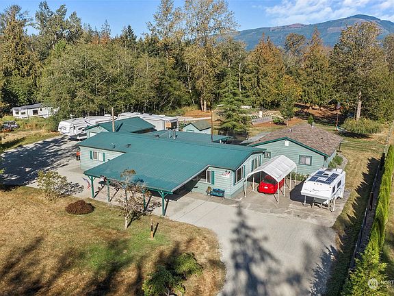 Beautiful setting at the top of the hill. This 4+ acre lot comes w/2 homes. The first is a 4 bedroom, 2 bath manufactured home w/a spacious open floor plan. This home features a large kitchen w/extensive cupboards & storage space, a large utility/flex room, a cozy freestanding stove in the living room, & so much more. The second is a stick built MIL w/ 2 bedrooms 1 bath, a cozy kitchen & living room. Don't forget the large detached garage w/s-pace for cars, hobbies & storage. Surrounded by level garden space as well as raised garden beds, this property is a rare gem, offering space to roam & create while also being close to schools & several amenities, highway 9, I-5, & downtown Mount Vernon. Don't let this one slip by!