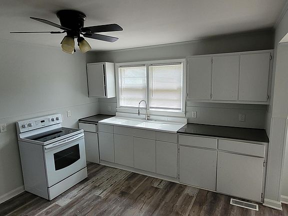 Three-bedroom, one-bath home. New flooring, new paint, formal DR, covered front porch, large yard, gas heat, and central A/C.