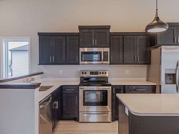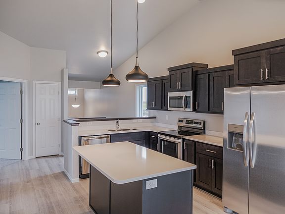 The 2180 Bi-Level 3 stall plan features an open foyer with vaulted ceilings and plenty of natural light. The entryway closet adds extra storage for the active family. This home features an open kitchen with breakfast bar, dining & living room space and 4 bedrooms, 2 baths. The kitchen is the highlight in this home with custom cabinets, granite countertops, and ample counter space for the avid cook. Finished on both levels, this home is spacious and affordable. Included in the base price of your home is kitchen appliances and a deck.