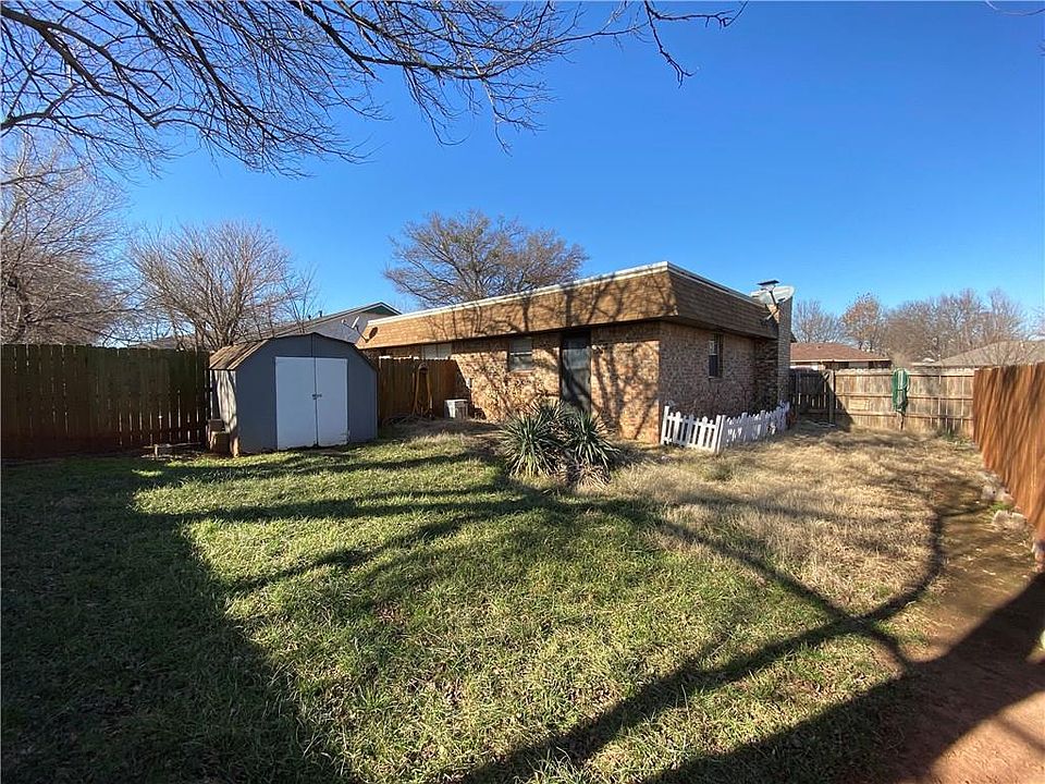 PRICE REDUCTION This comfortable 2 bedroom 1 bath unit half duplex is located in a quiet neighborhood and close to various local amenities! Quick and easy access to I-35 and I-240. Living room has 1 fireplace, and opens into the dining area. Recently updated and fresh paint! Both bedrooms have large walk in closets Fenced yard with storage building for yard equipment!