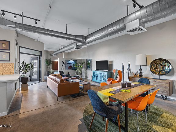 Welcome home to this stunning single-level, 2 bedroom, 2 bathroom penthouse in the highly sought-after Artisan Lofts. One of the premier view units, this residence features an oversized private patio with breathtaking views of Camelback Mountain, offering a rare blend of modern design and timeless character. Inside, you are welcomed by custom polished concrete floors, soaring ceilings, and an abundance of natural light that create an open and inspiring atmosphere throughout. The chef's kitchen is the heart of the home, showcasing warm natural wood cabinetry, luxury stainless steel appliances, a designer-selected backsplash, and sleek quartz countertops with bar seating, perfect for morning coffee or late-night conversations. The kitchen seamlessly opens to the great room, just steps from the dining area, making entertaining effortless. The primary bedroom enjoys direct Camelback Mountain views and features a spacious walk-in closet, while the primary bathroom offers a double quartz vanity and a designer walk-in shower with floor-to-ceiling glass, creating a true spa-like retreat. Every detail has been thoughtfully maintained, resulting in a home that feels both sophisticated and inviting. Step outside to your private patio to take in the stunning mountain views, and enjoy the convenience of two dedicated parking spaces. This one-of-a-kind penthouse truly captures the best of urban luxury and desert charm. Welcome home.
