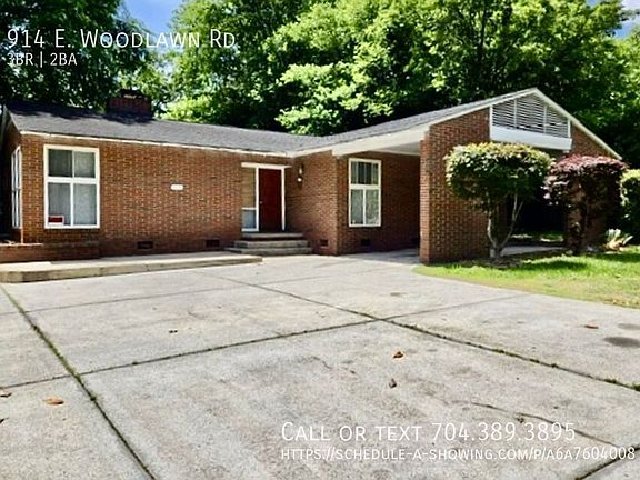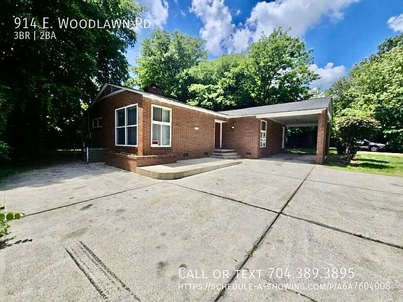 Welcome to 914 E Woodlawn Rd, a charming 3-bedroom, 2-bathroom single-family home nestled in the desirable Madison Park neighborhood of Charlotte, NC. This all-brick residence offers a blend of classic appeal and modern updates, providing a comfortable and spacious living environment. No rent increase for two years! Will do 2 year leases or 1 year lease with addendum that says tenant will have the option to renew at the same Rate! Key Features: Spacious Living: The home boasts 1,560 square feet of living space, featuring three well-appointed bedrooms and two bathrooms. Comfortable Climate: Stay comfortable year-round with central heating and air conditioning. Outdoor Space: The property includes a fenced yard and a rear porch/terrace, perfect for outdoor activities and gatherings. Parking: Benefit from a carport and driveway parking accommodating up to three vehicles. Situated on Woodlawn Rd between Park Rd and South Blvd, this home offers a prime location with easy access to SouthPark Mall, I-77, and Uptown Charlotte. The Madison Park neighborhood is known for its friendly atmosphere and proximity to shopping centers, dining options, and parks. Close To Park Rd Shopping Center Driveway Fencing