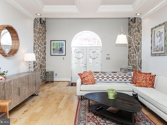 Welcome to this elegantly reimagined, extra wide, 3 story townhouse on one of Canton's loveliest streets. Everything about this house is custom, custom, custom. This renovation was carefully planned and expertly executed. As you enter the 20 foot high foyer, your eye will be drawn up to the second floor balcony and the arched windows that bring in abundant light. The living room will entrance you with its stone surrounded fireplace and coffered and tray ceiling. This space flows perfectly into the gourmet kitchen which boasts a GE Monogram 5 burner stove, granite counters, lighted cabinets, and a brand new dishwasher. The formal dining room has an elegant chair rail, barrel ceiling, and crown moldings. Wide board 3/4 inch solid maple floors are throughout the house. The dining room opens to your private patio, making it ideal for entertaining or quiet mornings with a cup of coffee. The contemporary floating staircase leads to the second floor where you will find two spacious bedrooms with ample closets. One bedroom has a balcony over looking the foyer. The large hall bath has both a shower and soaking tub. There is also the coveted office space for those who work from home. The third floor is devoted to the sun filled primary bedroom overlooking the street, a huge walk through closet and the primary bath. At the rear is either an additional office or a bar area that will making entertaining on your deck a breeze. The panoramic view from the deck has to be experienced. One of the best views in Canton! The basement family room is carpeted and has built in shelving. There is plenty of room for a sectional sofa plus other comfortable seating or ideal for a home work out space.. You will also find the additional full bath with step in shower. Additional basement space is perfect for storage and houses the brand new washer and dryer.
