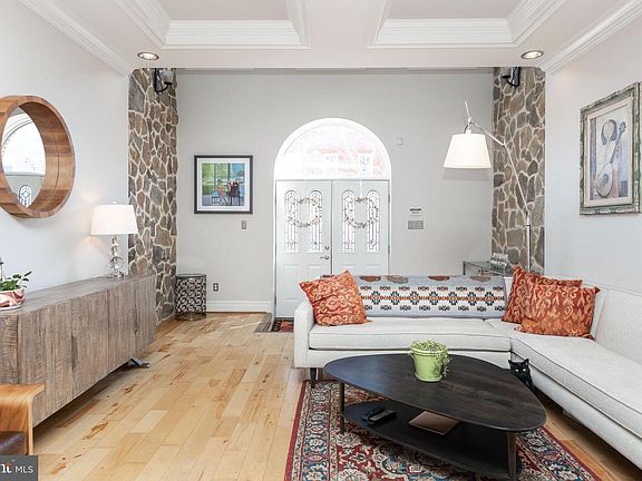 Welcome to this elegantly reimagined, extra wide, 3 story townhouse on one of Canton's loveliest streets. Everything about this house is custom, custom, custom. This renovation was carefully planned and expertly executed. As you enter the 20 foot high foyer, your eye will be drawn up to the second floor balcony and the arched windows that bring in abundant light. The living room will entrance you with its stone surrounded fireplace and coffered and tray ceiling. This space flows perfectly into the gourmet kitchen which boasts a GE Monogram 5 burner stove, granite counters, lighted cabinets, and a brand new dishwasher. The formal dining room has an elegant chair rail, barrel ceiling, and crown moldings. Wide board 3/4 inch solid maple floors are throughout the house. The dining room opens to your private patio, making it ideal for entertaining or quiet mornings with a cup of coffee.