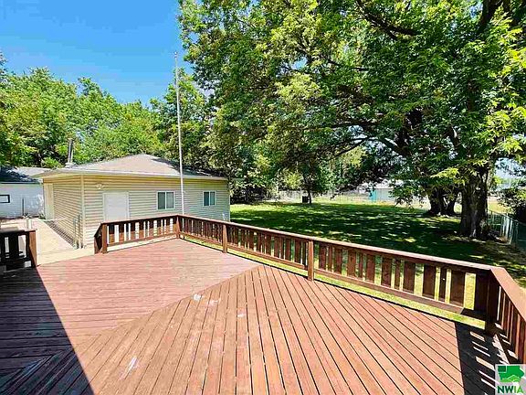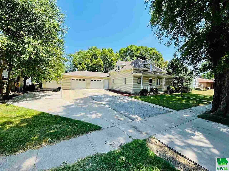 Completely remodeled 1 1/2 story home located on a quiet street in Sloan. There are so many pluses with this property outside and inside. The lot the house sits on is large, flat, and the backyard is completely fenced in with mature trees scattered throughout. There are two massive 2 car garages. One of the garages is attached and heated, and the other garage is detached with tons of space on the back side of the attached garage. There is also a generously sized and freshly stained deck just a few feet away from the garages on the backside of the home that provides a great view of the backyard and ball fields beyond the back side of the property. When you walk through the front door you will notice that the house has been completely updated with new vinyl plank flooring, trim, and paint throughout the main floor. Upon entry you will be greeted by the living room with a bedroom to your left. You will pass through the living room and encounter a bonus room connected to another main floor bedroom and stairs taking you up to the biggest bedroom in the house with brand new carpet and tons of closet space. The kitchen/dining area is gorgeous and features barn doors, fresh granite countertops, SS appliances, newly painted cupboards, and an island with pendant light fixtures. The main bathroom is just a few steps away from the kitchen and has been recently redone with a walk-in tiled shower with built-ins. Across the main bathroom is the main floor laundry/utility room that also includes a toilet and a sink. This one isn't going to last long! All offers will be presented on Monday, June 28th.